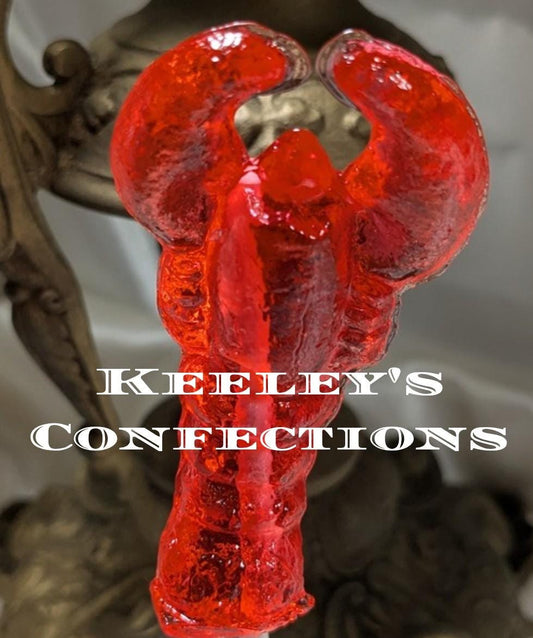 Vintage Clear Toy Candy, Castine Cinnamon Lobster Collection Lollipops 3 Dimensional - 6 Count